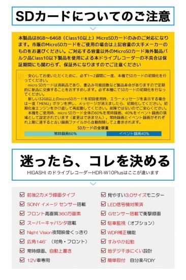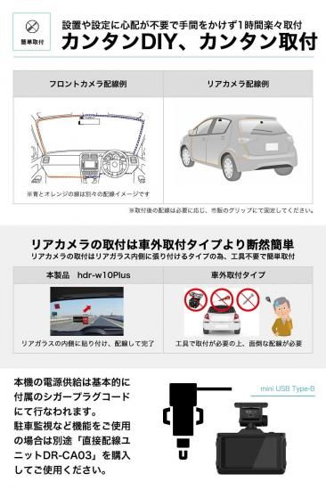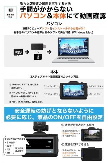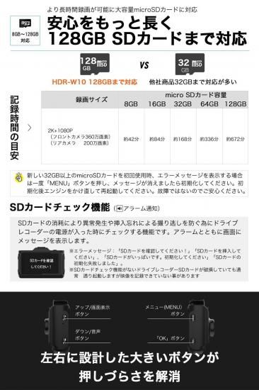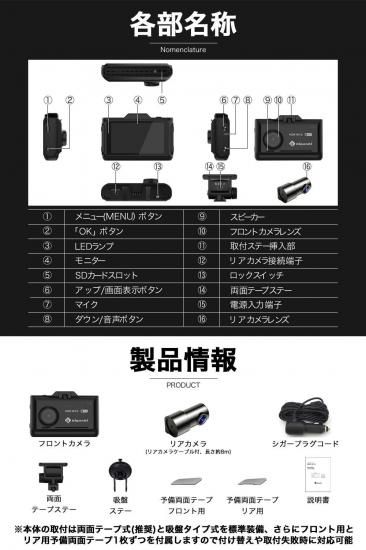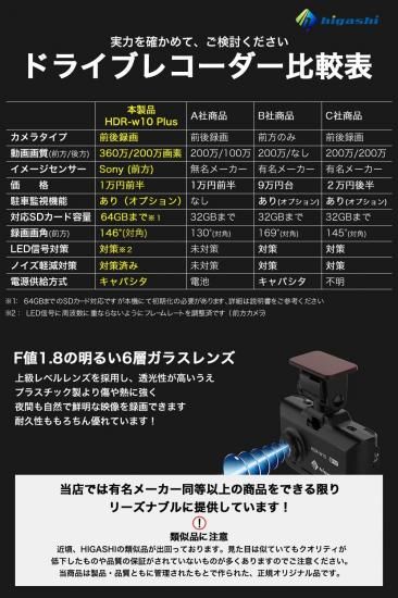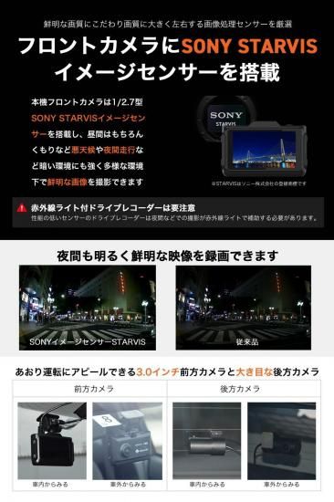 ≪会員特価あり≫ドライブレコーダー 前後 360画素 前後カメラ SONYセンサー GPS SDカード付 ステッカー 駐車監視 広角 ノイズ対策 型番W10plus