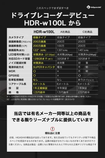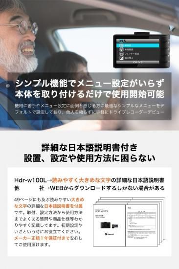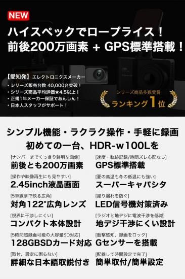 ≪会員特価あり≫【ドラレコデビューに最適】 ドライブレコーダー 前後2カメラ 前後 200万画素 前後カメラ GPS搭載あおり運転抑止 1年保証 LED信号機対応 人気 型番HDR-w100L